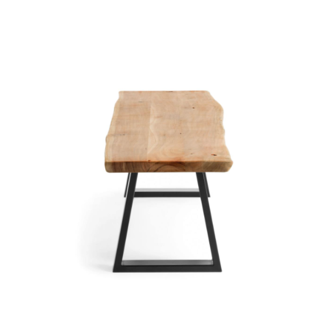 Alaia bench in solid natural acacia wood and black steel legs 140 cm