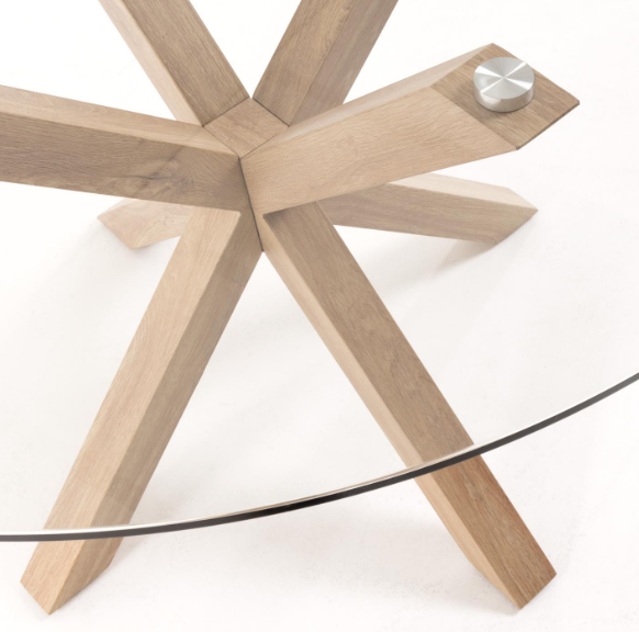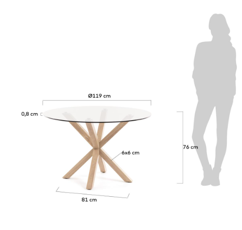 Full Argo round glass table and wood effect steel legs