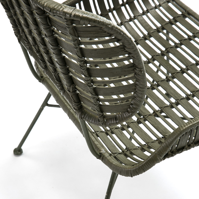 Armchair green metal/green wicker
