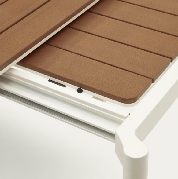 Canyelles extendable outdoor table in polywood and matte white aluminum.