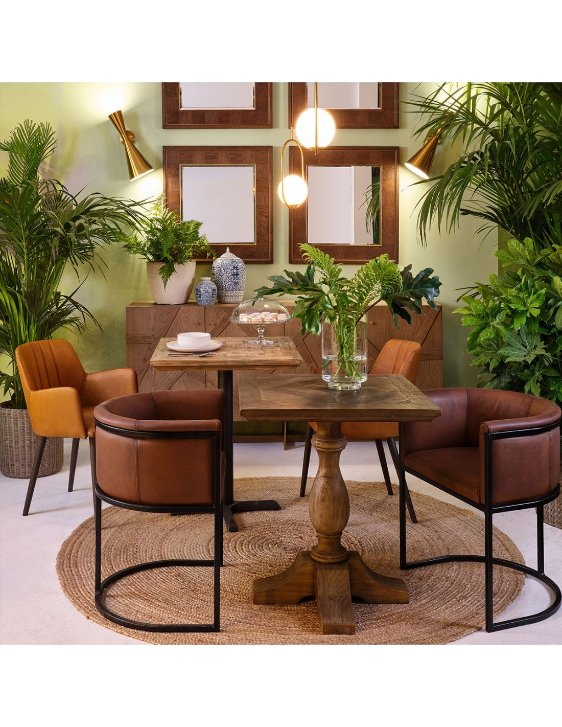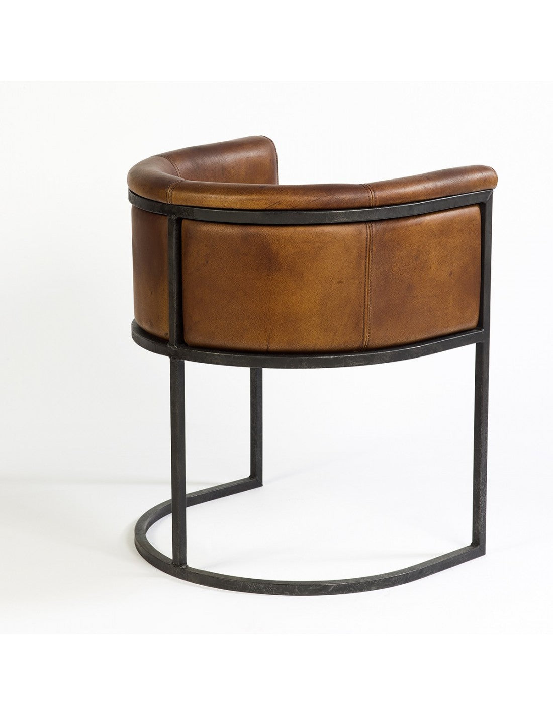 Brown leather armchair with black metal legs. Softness from leather, perfect for contemporary decor. Durable and timeless,...