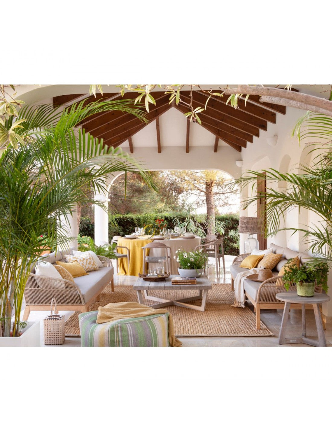 Light gray rope chair and light wood. Stackable armchair suitable for outdoor use thanks to its materials. Made of...
