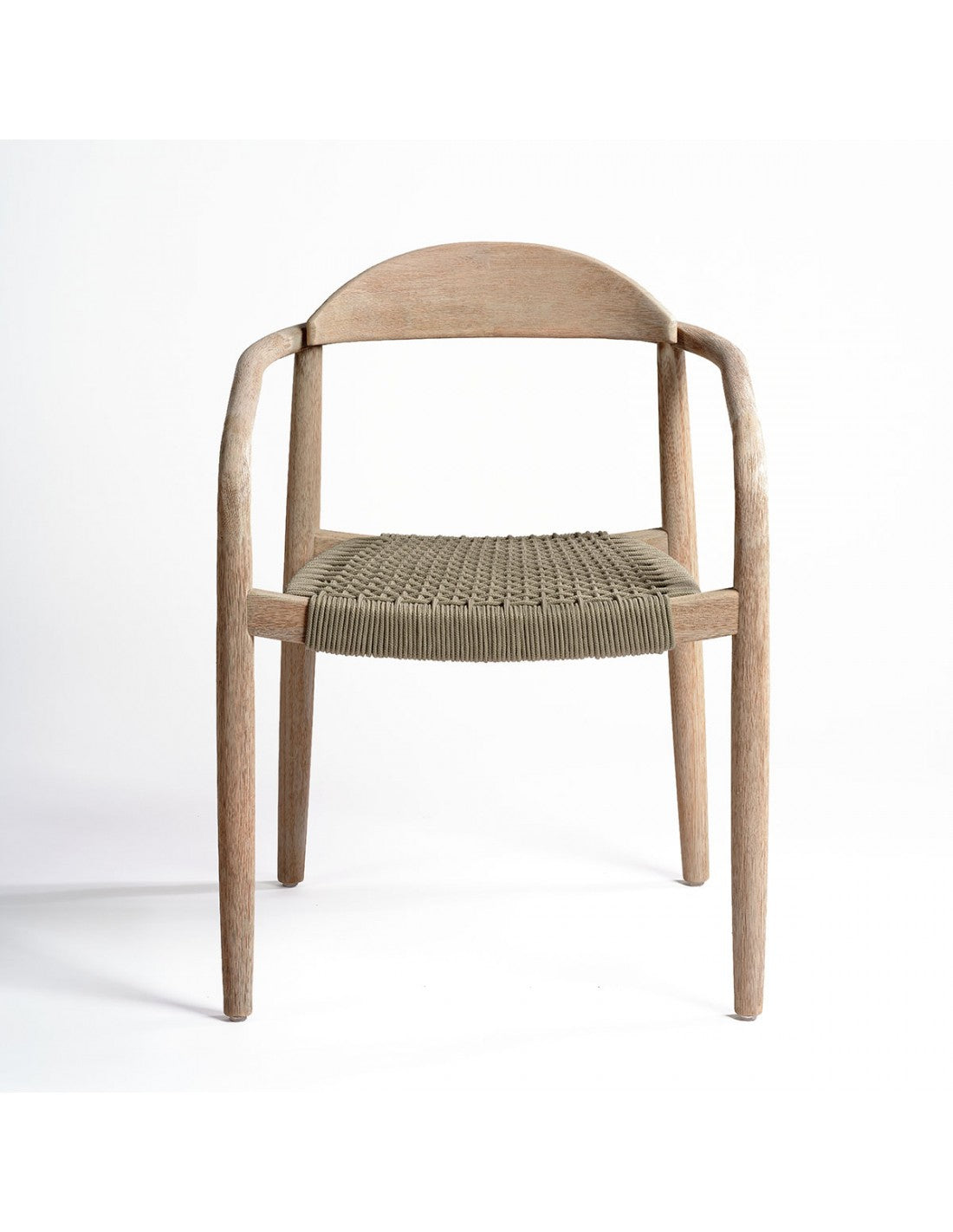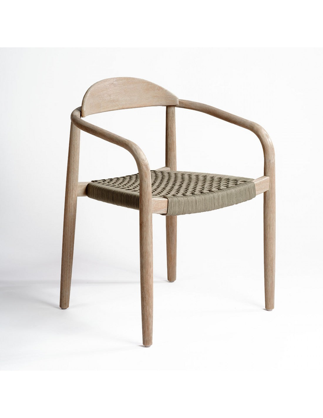 Taupe rope chair and light wood. Stackable armchair suitable for outdoor use thanks to its materials. Made of synthetic...