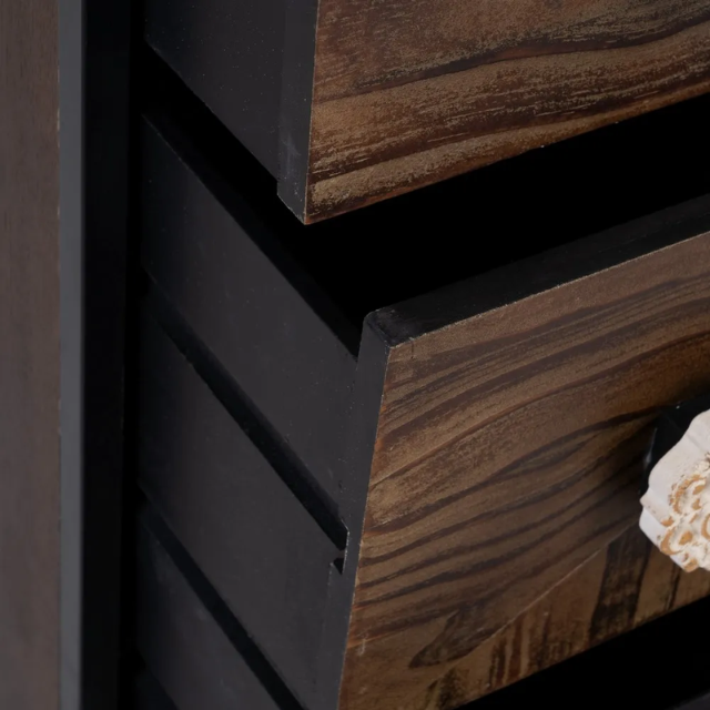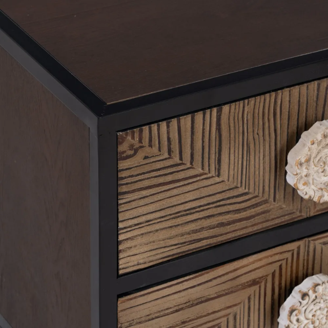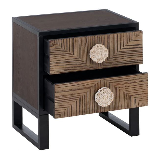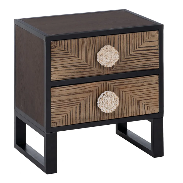 Dark brown table. Material: Fir and pine wood, dm. Leg material: Iron Leg height: 15.5cm Drawer size:...
