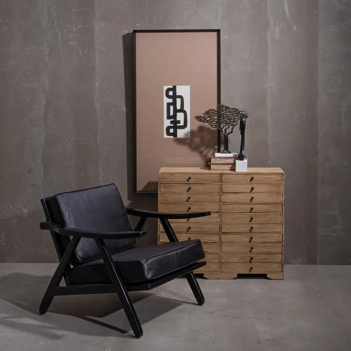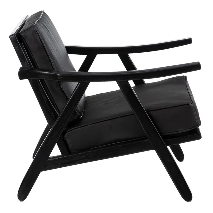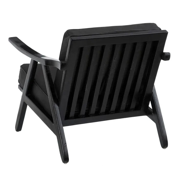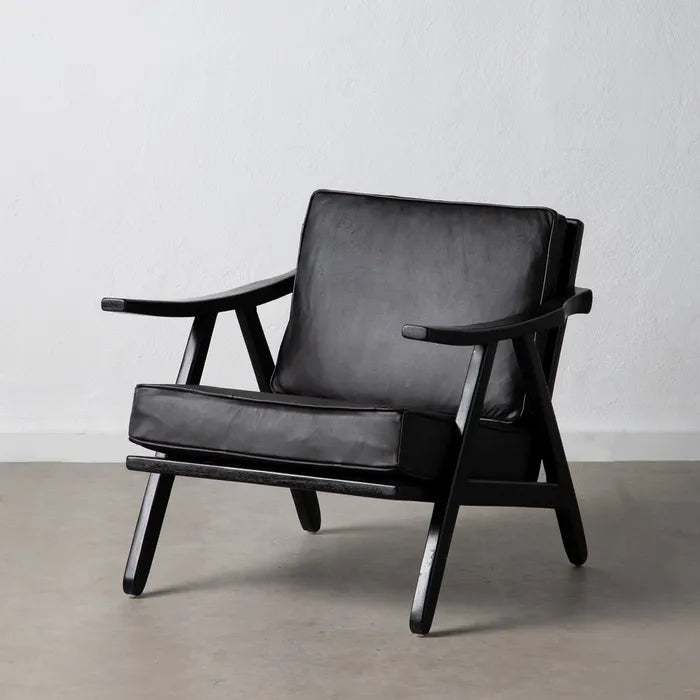 ARMCHAIR BLACK TEAK WOOD-LEATHER ROOM 70 X 75 X 70 CM