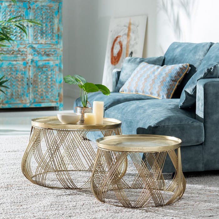 S/2 MAIN TABLE GOLD IRON ROOM 56 X 56 X 37 CM