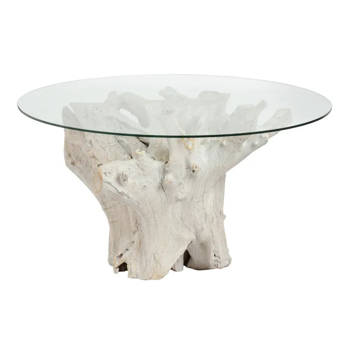 DINING TABLE WORN WHITE WOOD / GLASS 140 X 140 X 75 CM