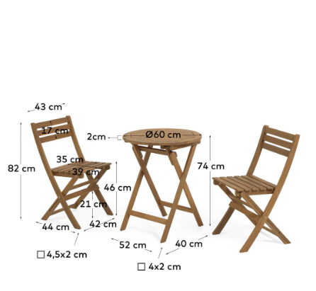 Elisia outdoor set of folding table and 2 chairs made of 100% FSC solid acacia wood