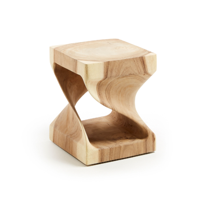 Hakon side table in solid mungur wood with carved interior 30 x 30 cm