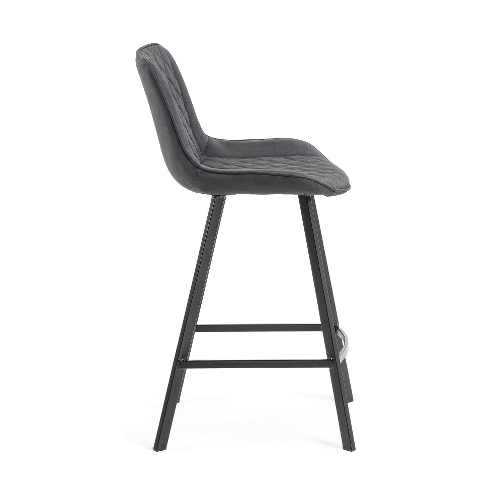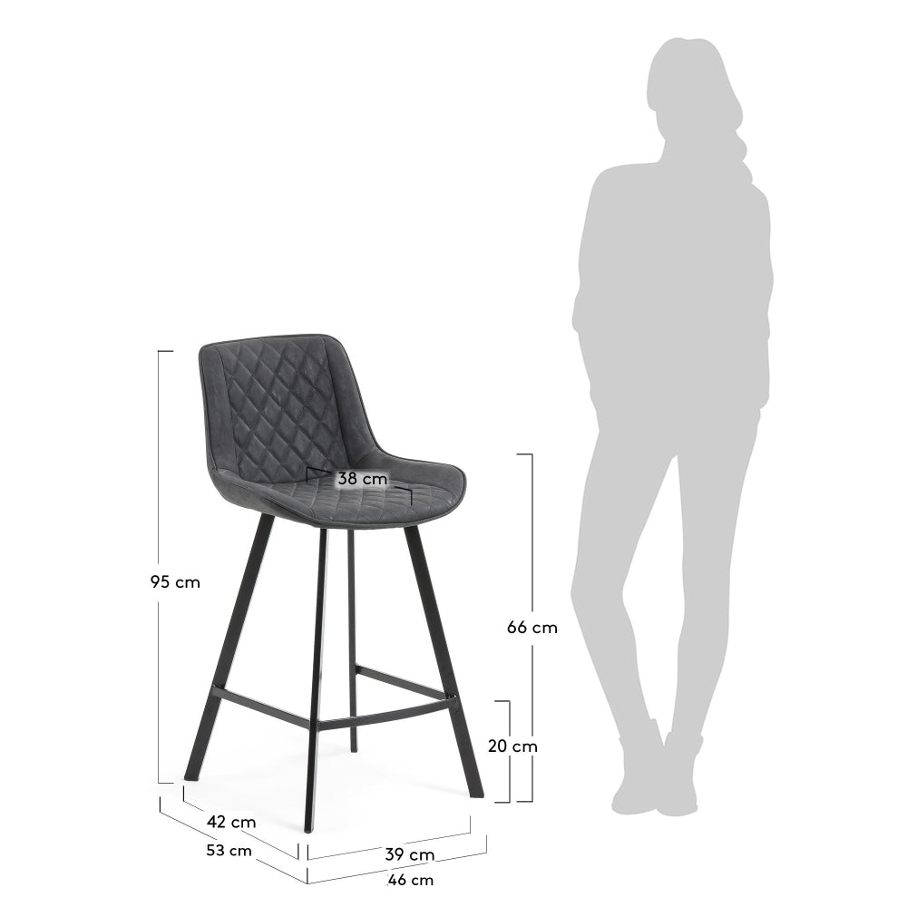 Black/Grey bar stool Adela , color: Synthetic Dark Grey Fabric , Black steel base with a 66...
