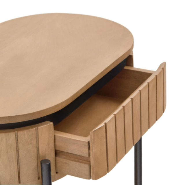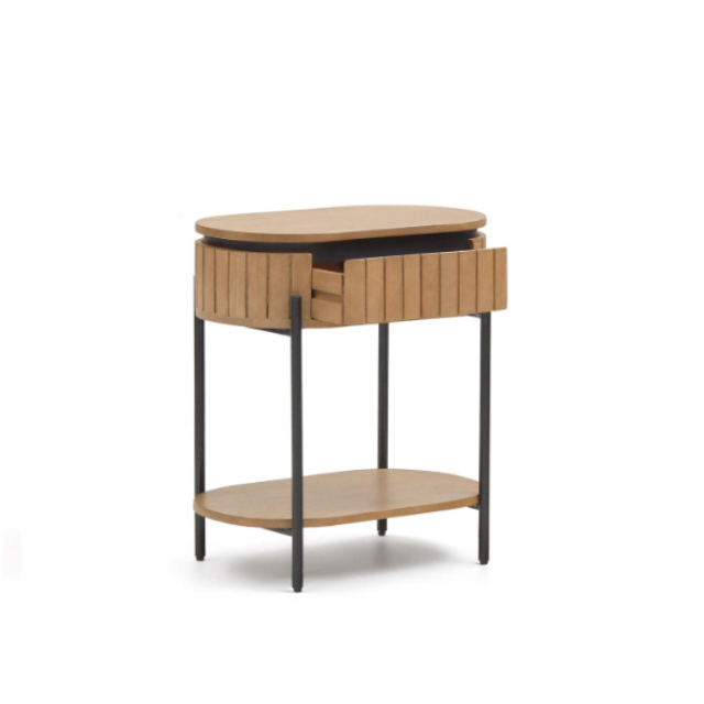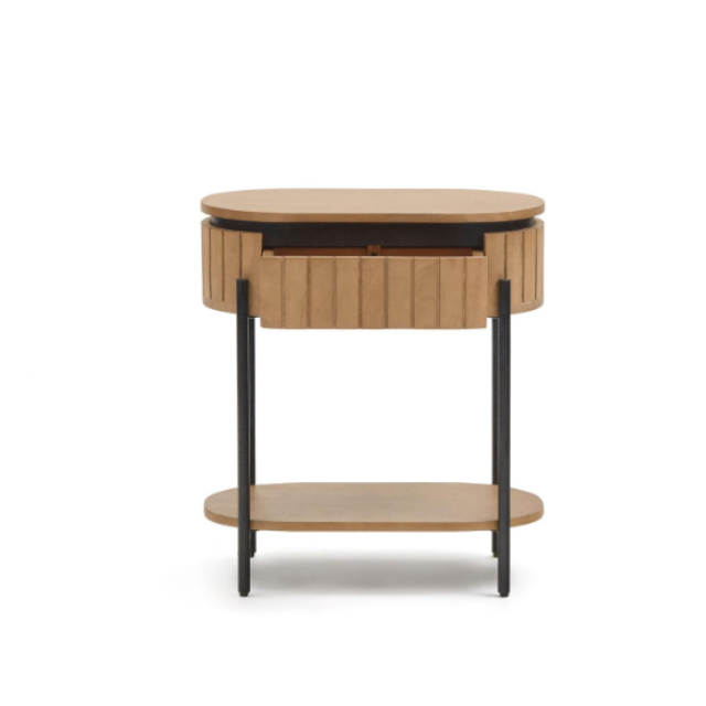 Licia bedside table 1 drawer in solid mango wood and black painted metal 55 x 65 cm
