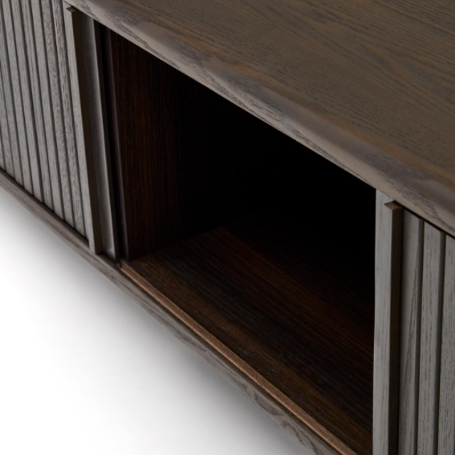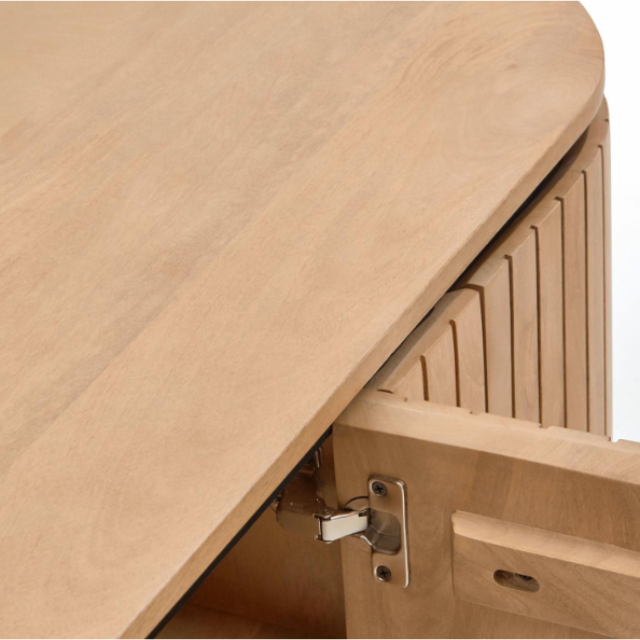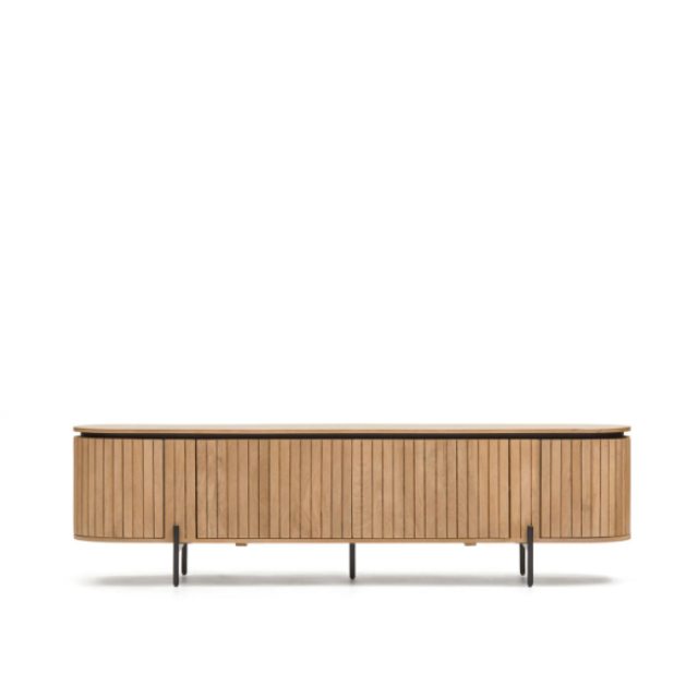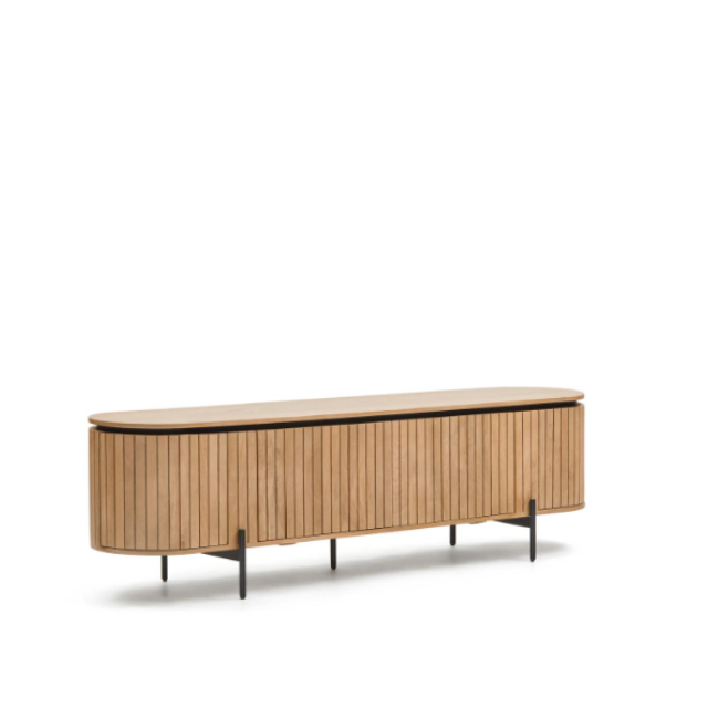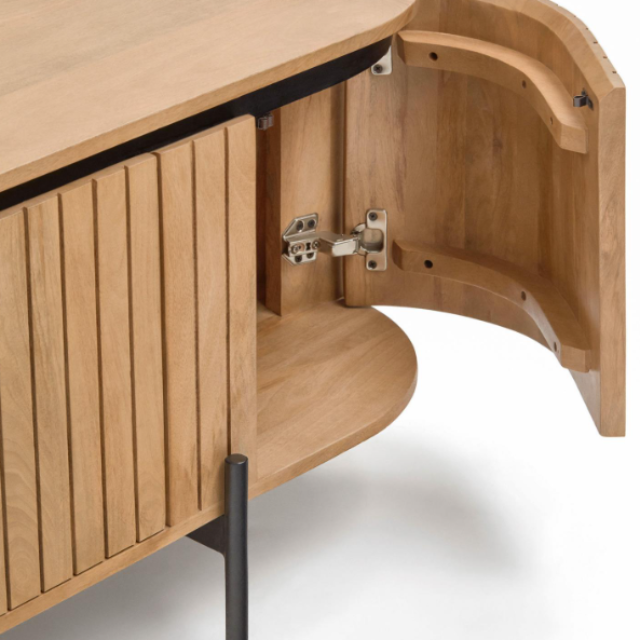 Licia TV cabinet with 4 doors in solid mango wood / ash veneer and black painted metal...