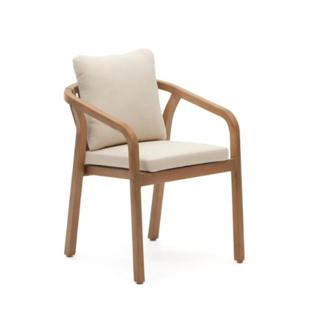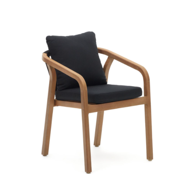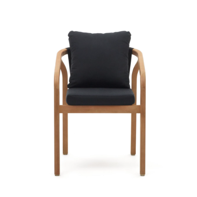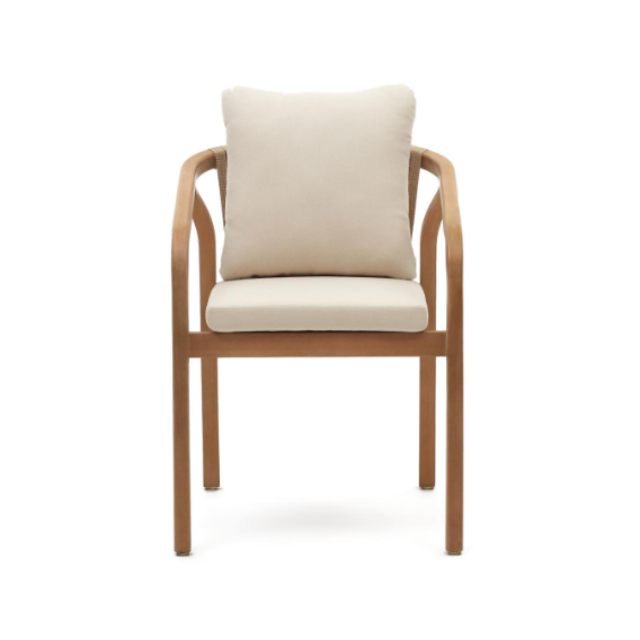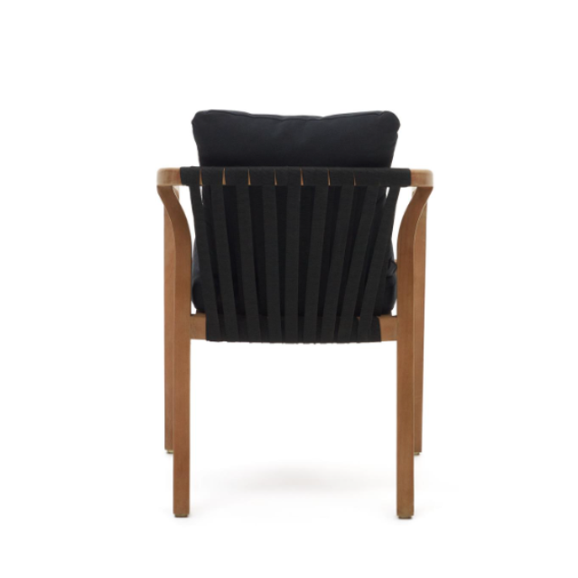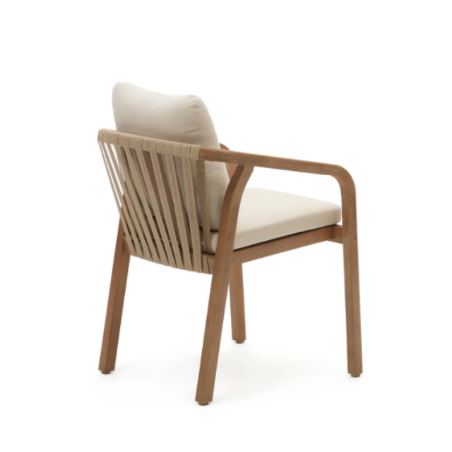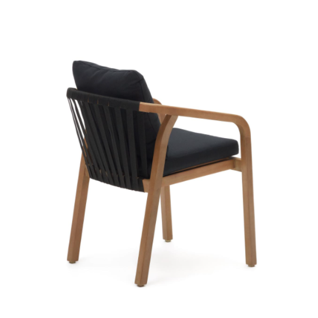 Malaret stackable chair in solid eucalyptus wood and Beige / Black rope FSC 100%