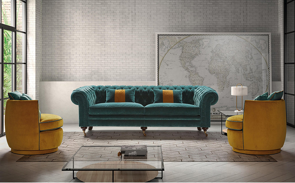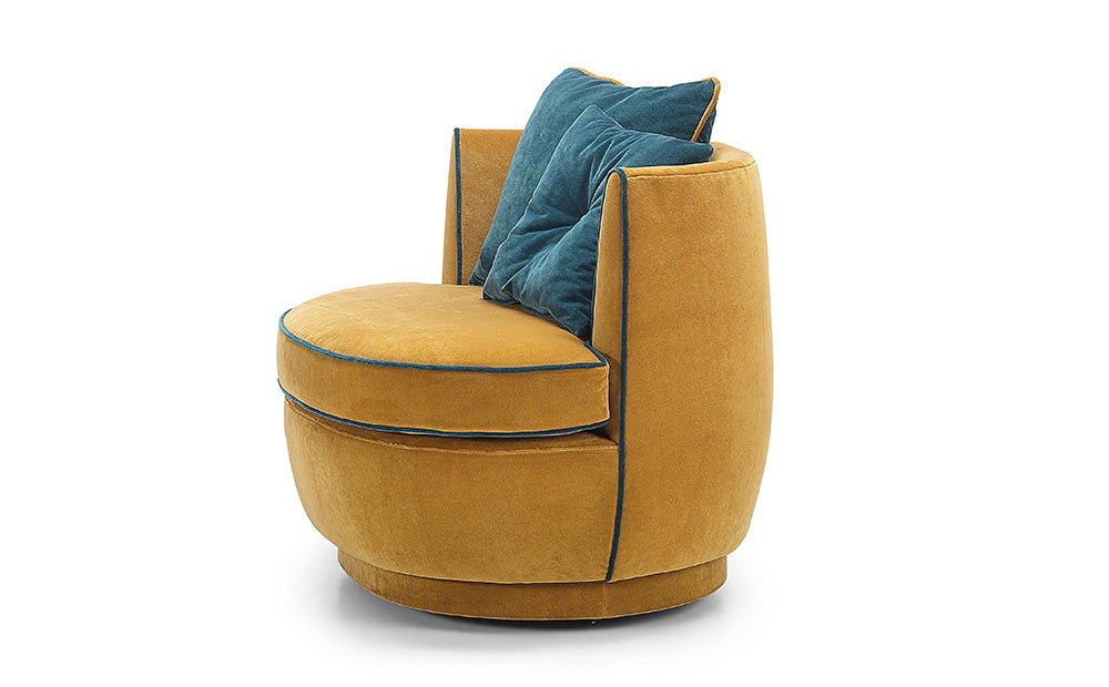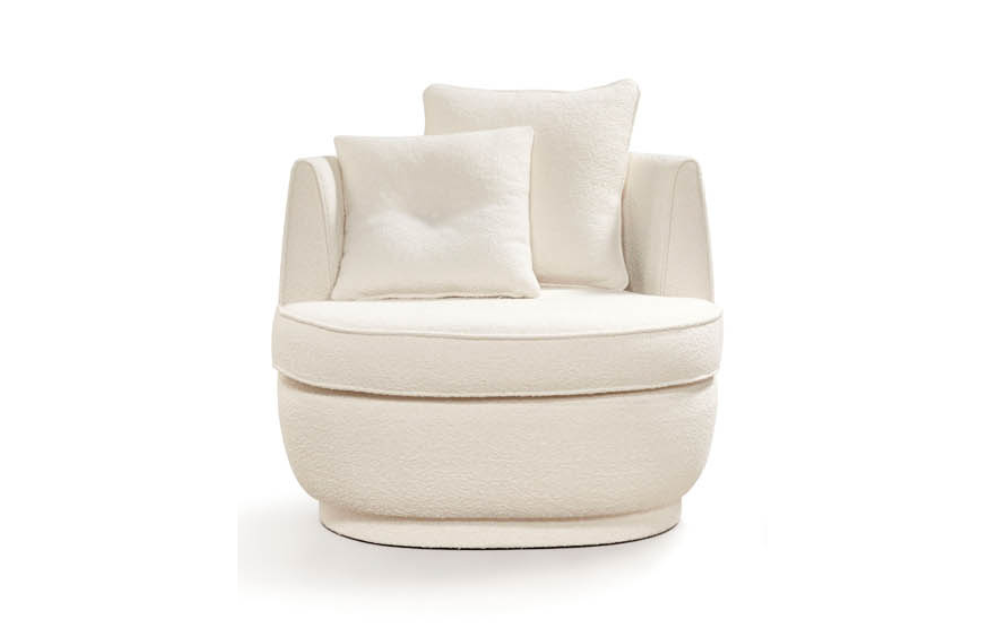 Sturdy wooden armchair with a round silhouette for living room spaces.