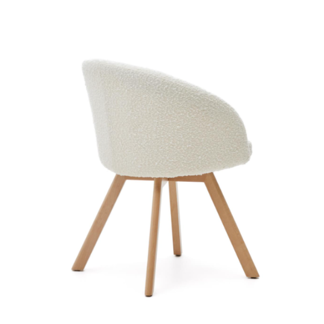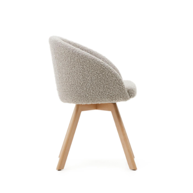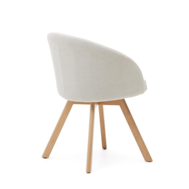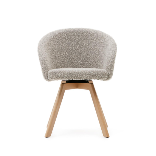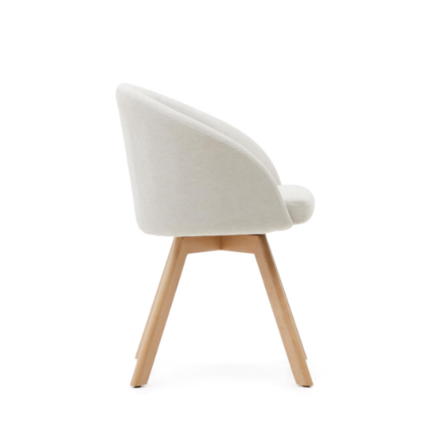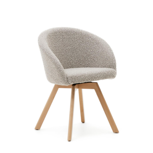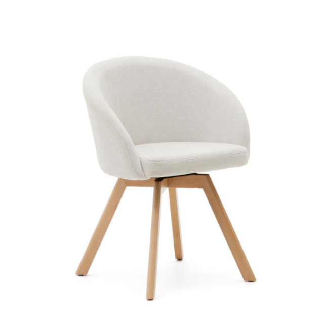 Marvin swivel chair Beige / White / Gray chenille and solid beech wood legs with natural finish ...