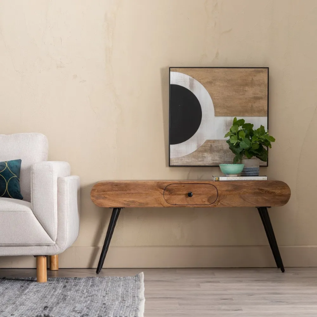 Natural - Black wood - Iron sideboard.  Material: mango wood, iron. Drawer: 32x12cm. Leg height: 39.5cm.