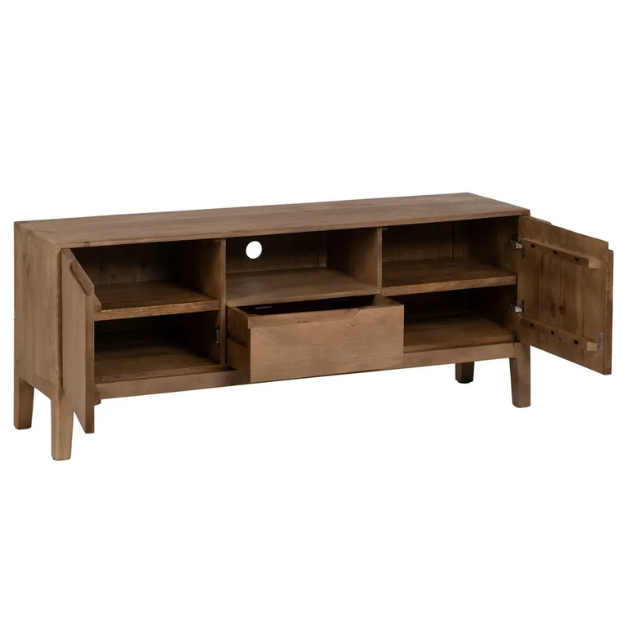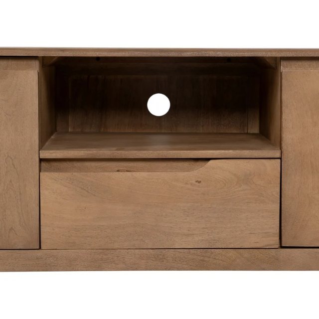 Natural mango wood living room TV Cabinet. Material: mango wood. Doors: 49.5x38.5cm. Drawer: 48x18cm. Hole: 48x18.5cm. Leg...