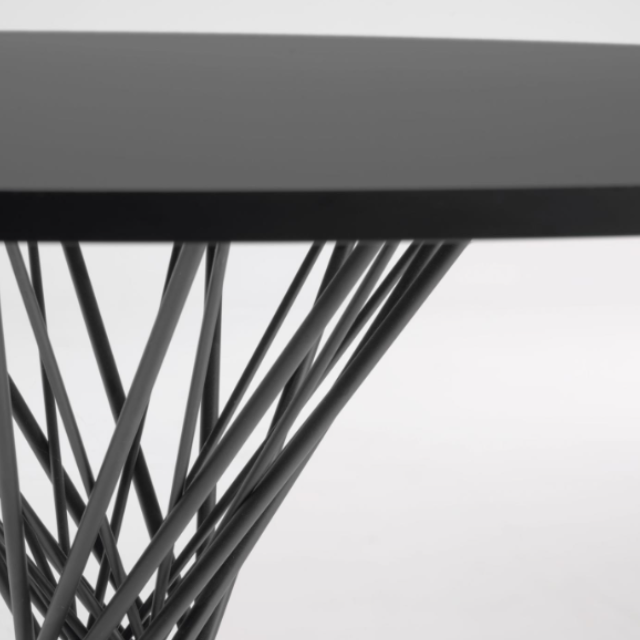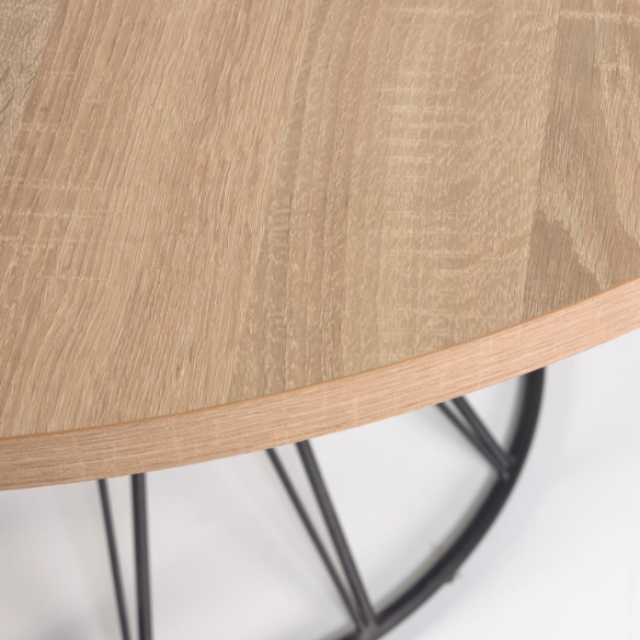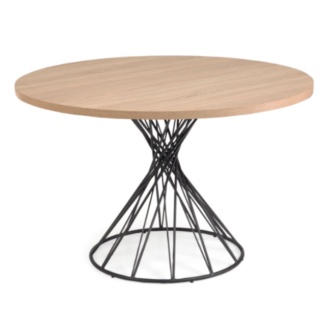Niut round melamine table with Natural /Black finish, black finish steel legs, Ø 120 cm.