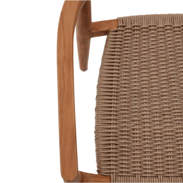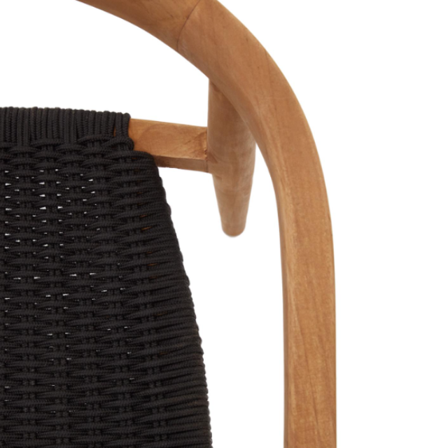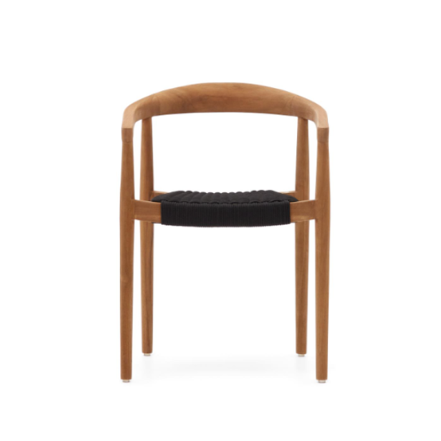 Ydalia outdoor stackable chair in solid teak wood with natural finish and Black or Beige rope