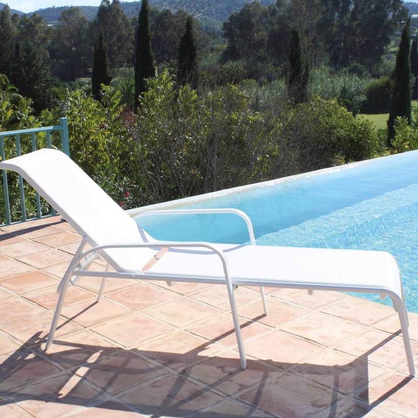 Stackable sunbed with armrests, White aluminum.Textilene in white