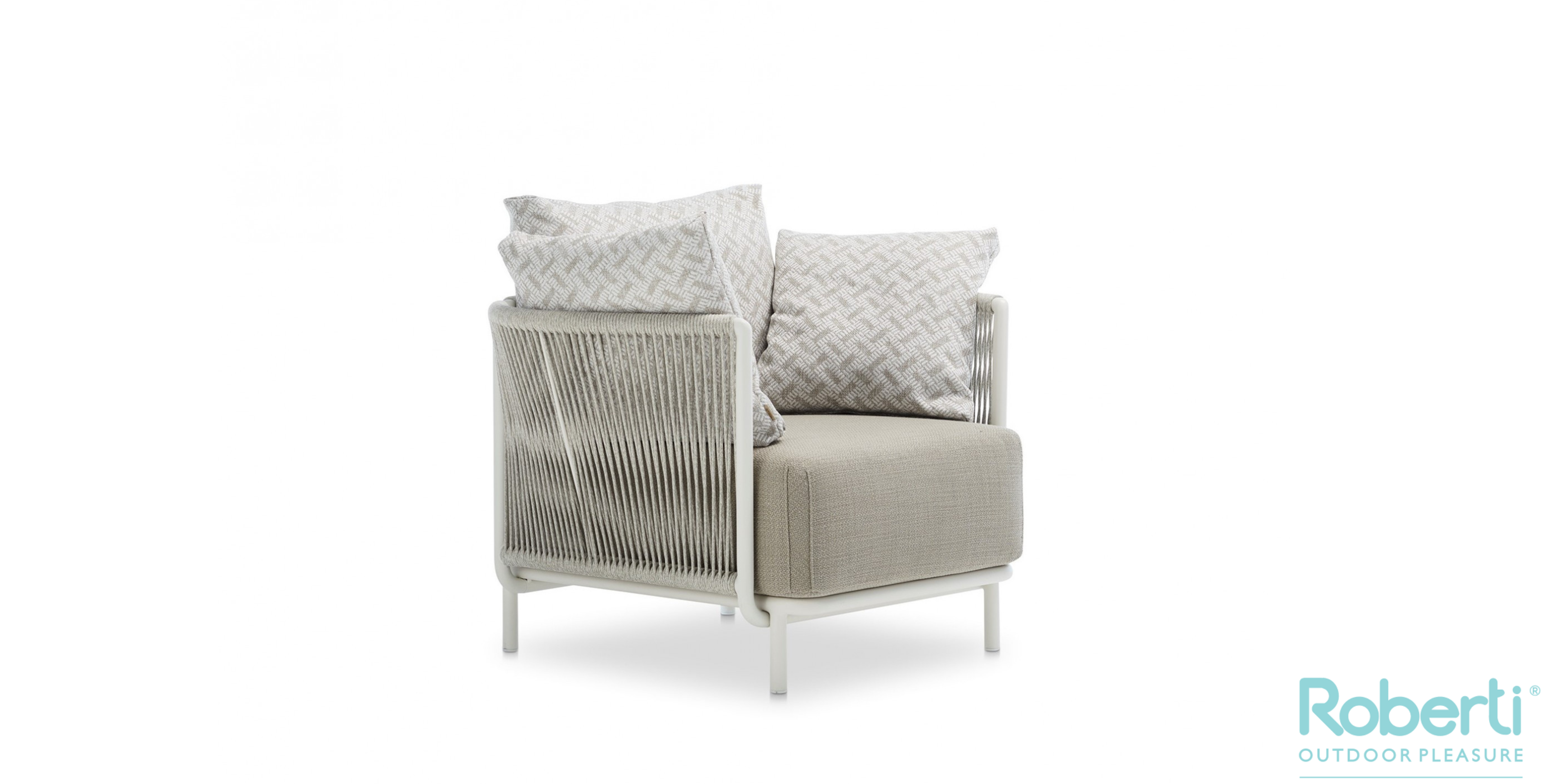 Armchair, aluminum frame powder coated, woven in Round Trendyrope. Aesthetics and comfort meet in this armchair with...