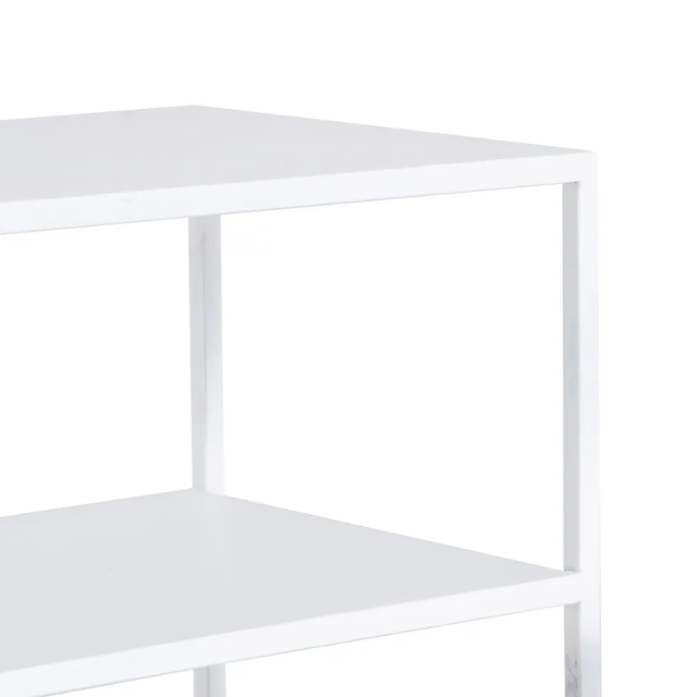 Set of 3 Console and 2 white metal tables.  Material: iron Console size: 80x30x80cm. Table size: 37.5x26.5x57cm.
