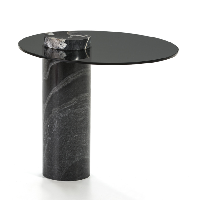 Side table glass/black granite.