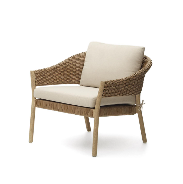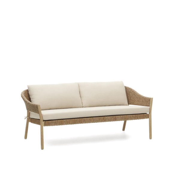 Pola stackable 2-seater sofa and 2 armchairs set in solid eucalyptus wood and FSC synthetic rattan
