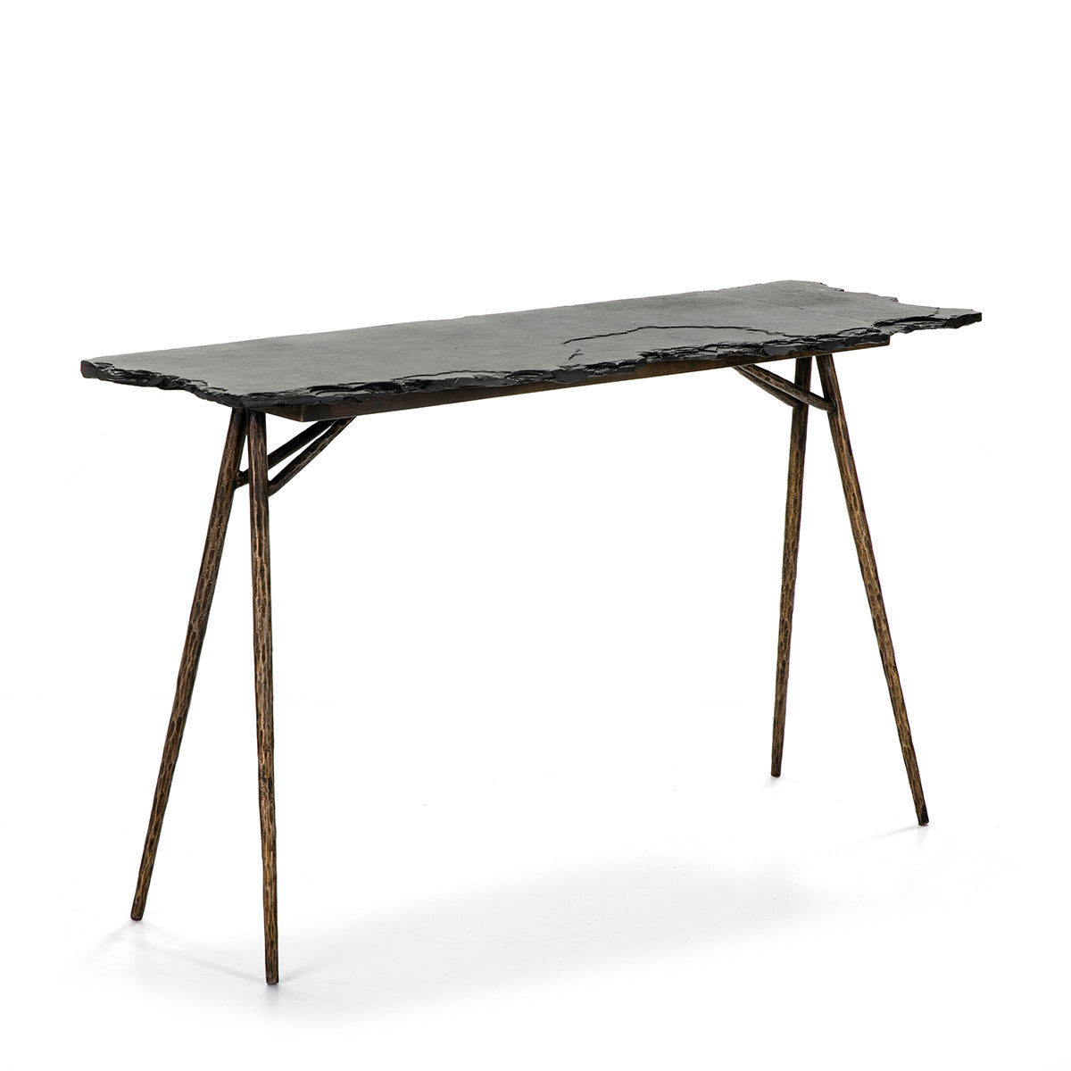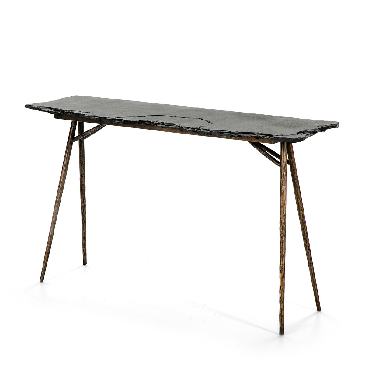 CONSOLA 130X33X74 APROX. PIEDRA NEGRO/METAL DORADO ANTIQUE
