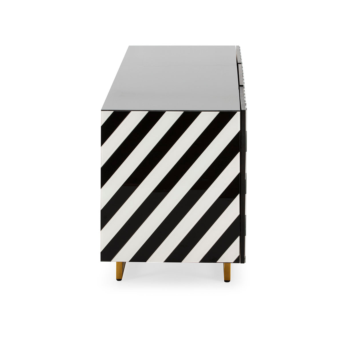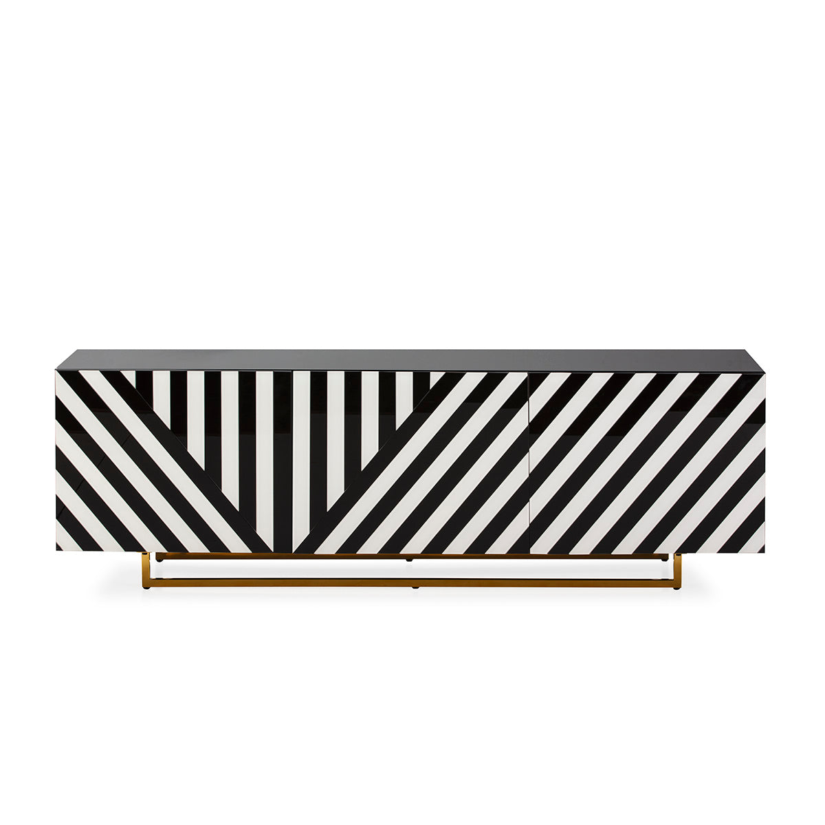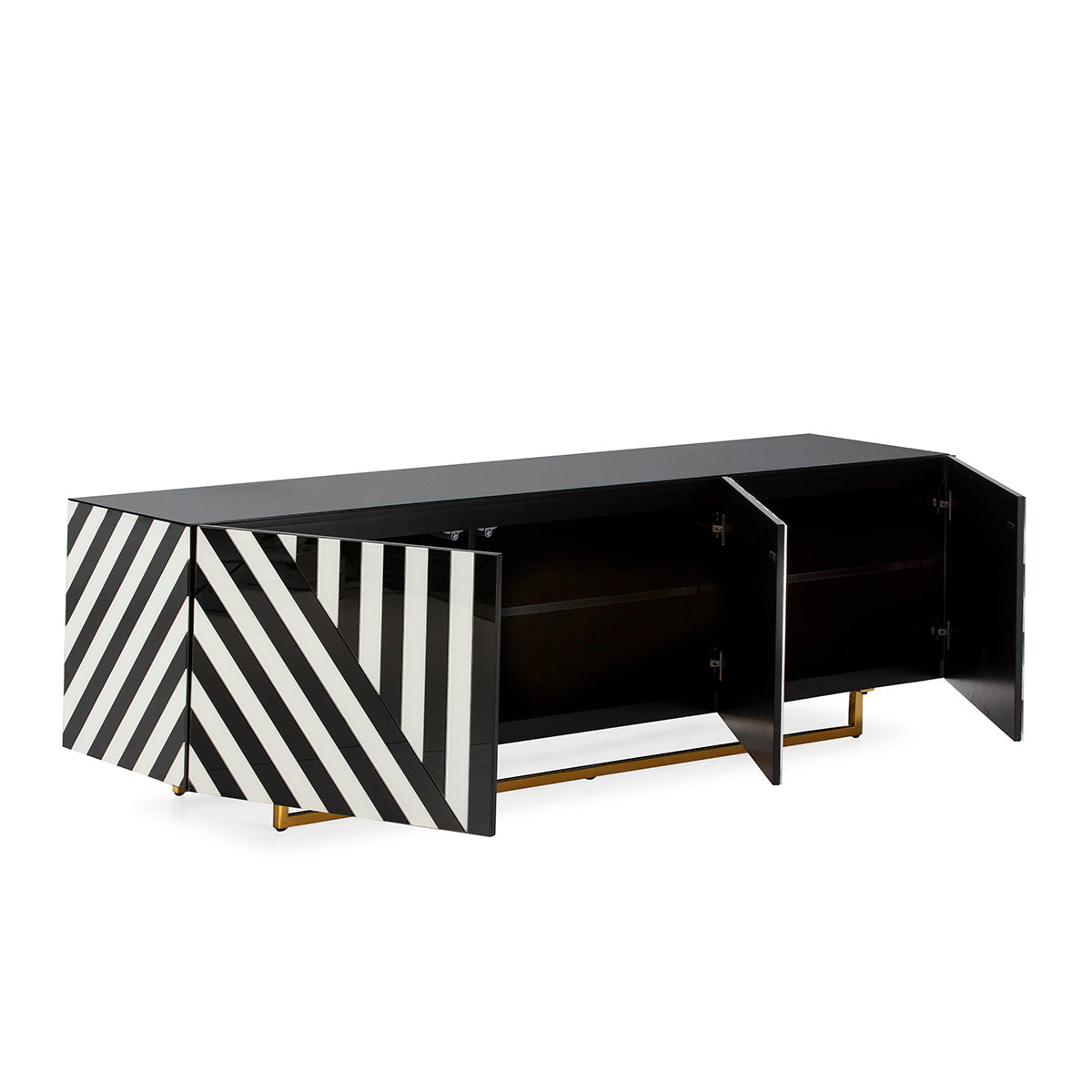 MUEBLE TV 175X44X46 CRISTAL BLANCO/NEGRO/ACERO DORADO