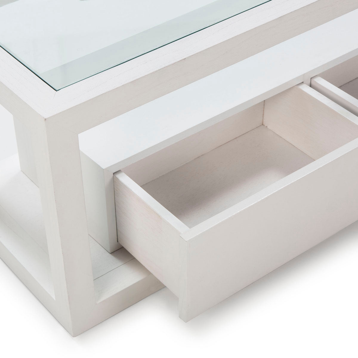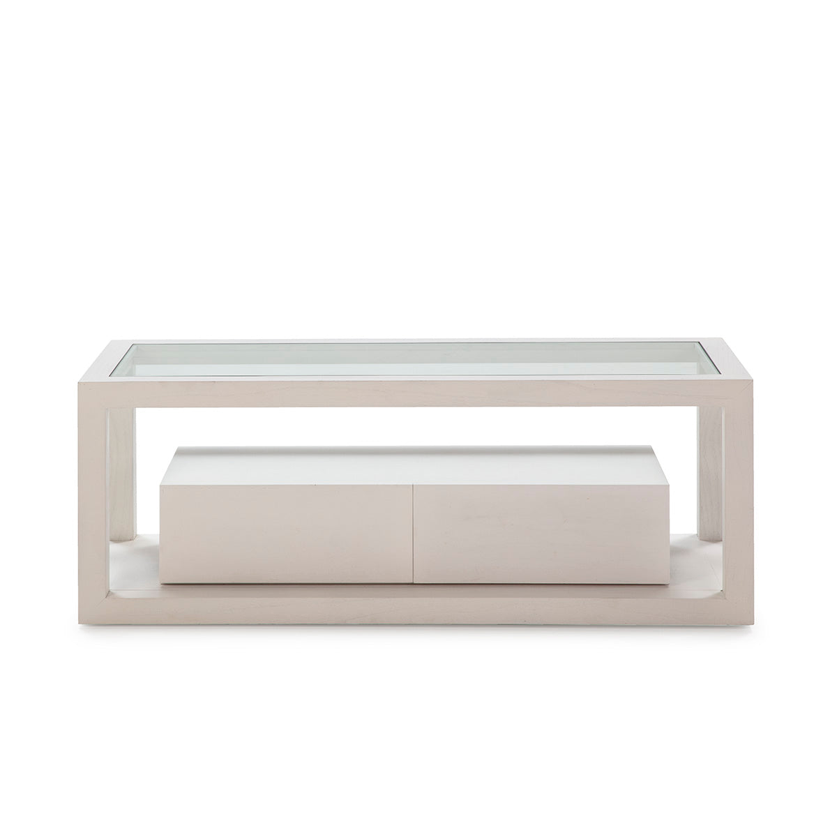 MUEBLE TV 120X45X45 CRISTAL/MADERA BLANCO 2 CAJONES