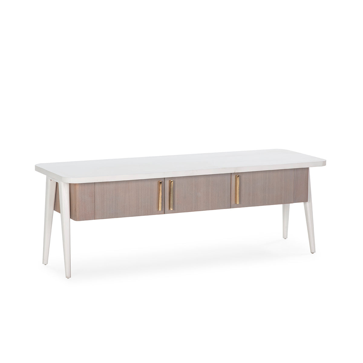 MUEBLE TV  MADERA BLANCO/NATURAL CON PÁTINA GRIS 150x50x51