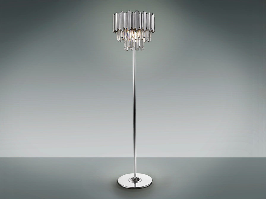 Floor lamp made of chromed metal. Shade of faceted glass prisms topped with chrome-plated ABS pieces.·Includes 3...