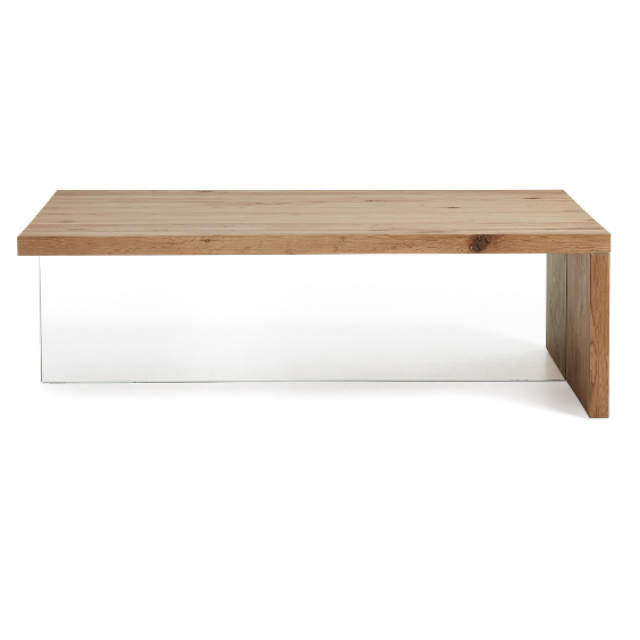 Tulsi coffee table solid oak wood and glass 120 x 70 cm