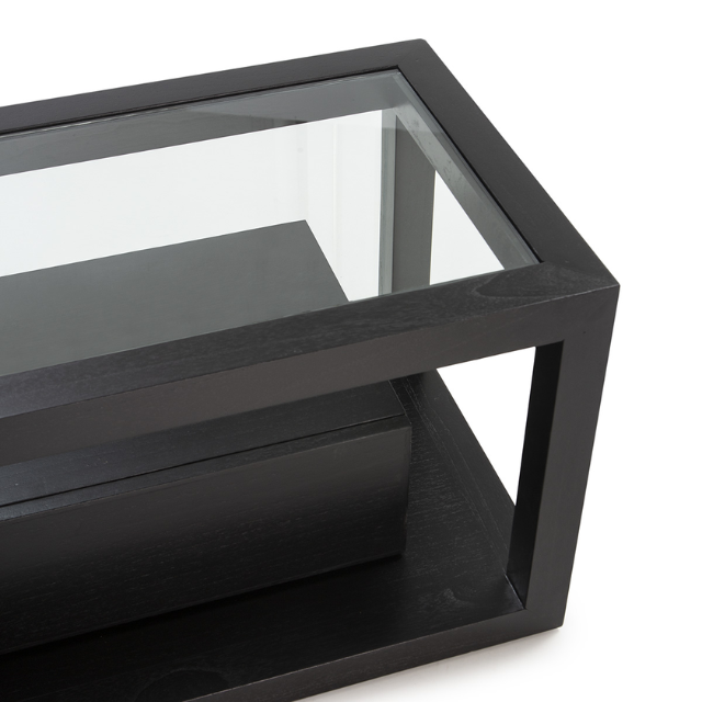 TV Unit black glass / wood 2 or 3 drawers.  Wood from sustainable forests.