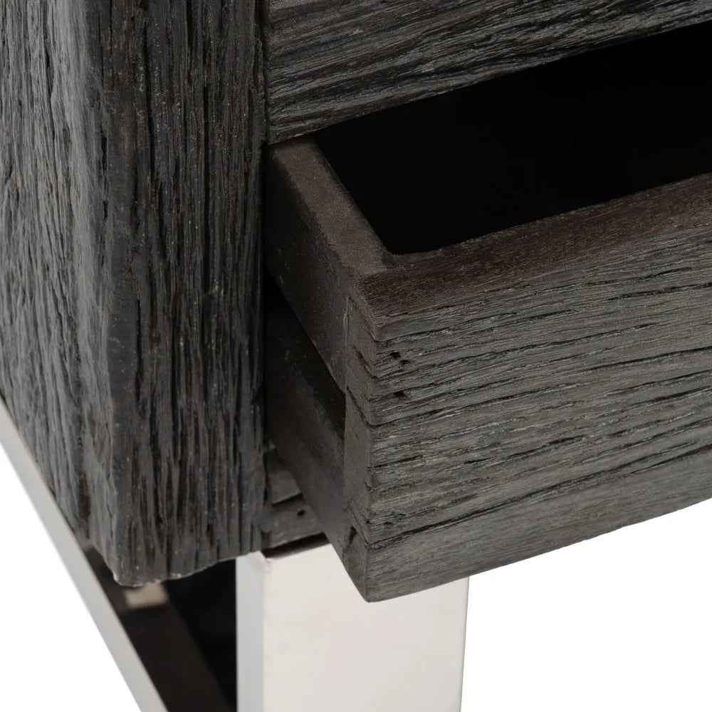 Black wood / steel living room TV cabinet. Material: wood, stainless steel. Drawers: 46x11cm. Leg height: 21cm....