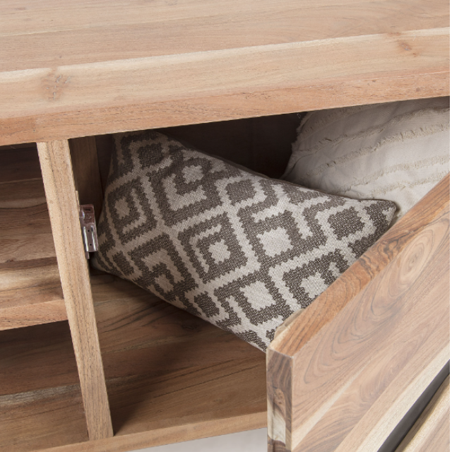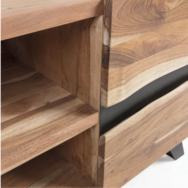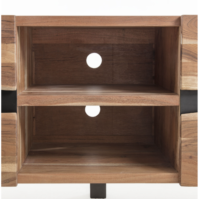 Uxia TV cabinet 2 doors in solid acacia wood and black finished steel 160 x 65 cm