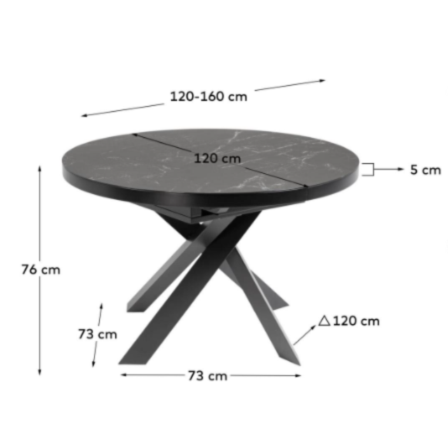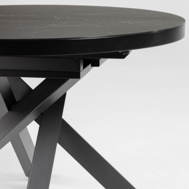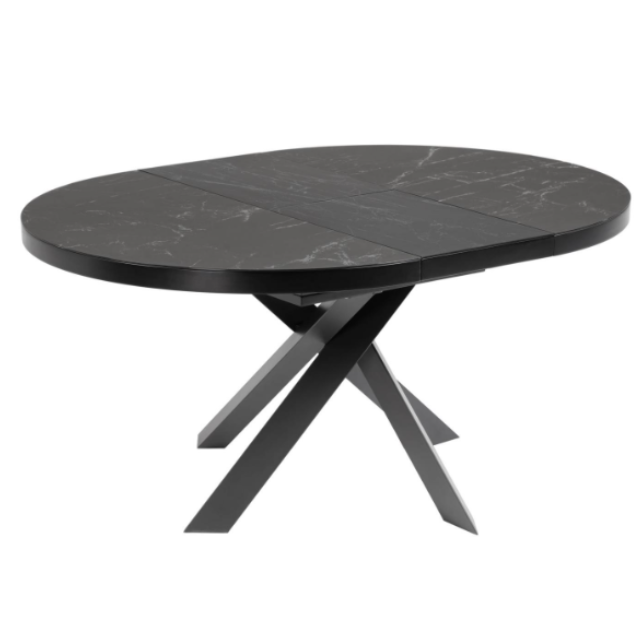 Vashti round extendable table Ø 120 (160) cm porcelain steel black finish