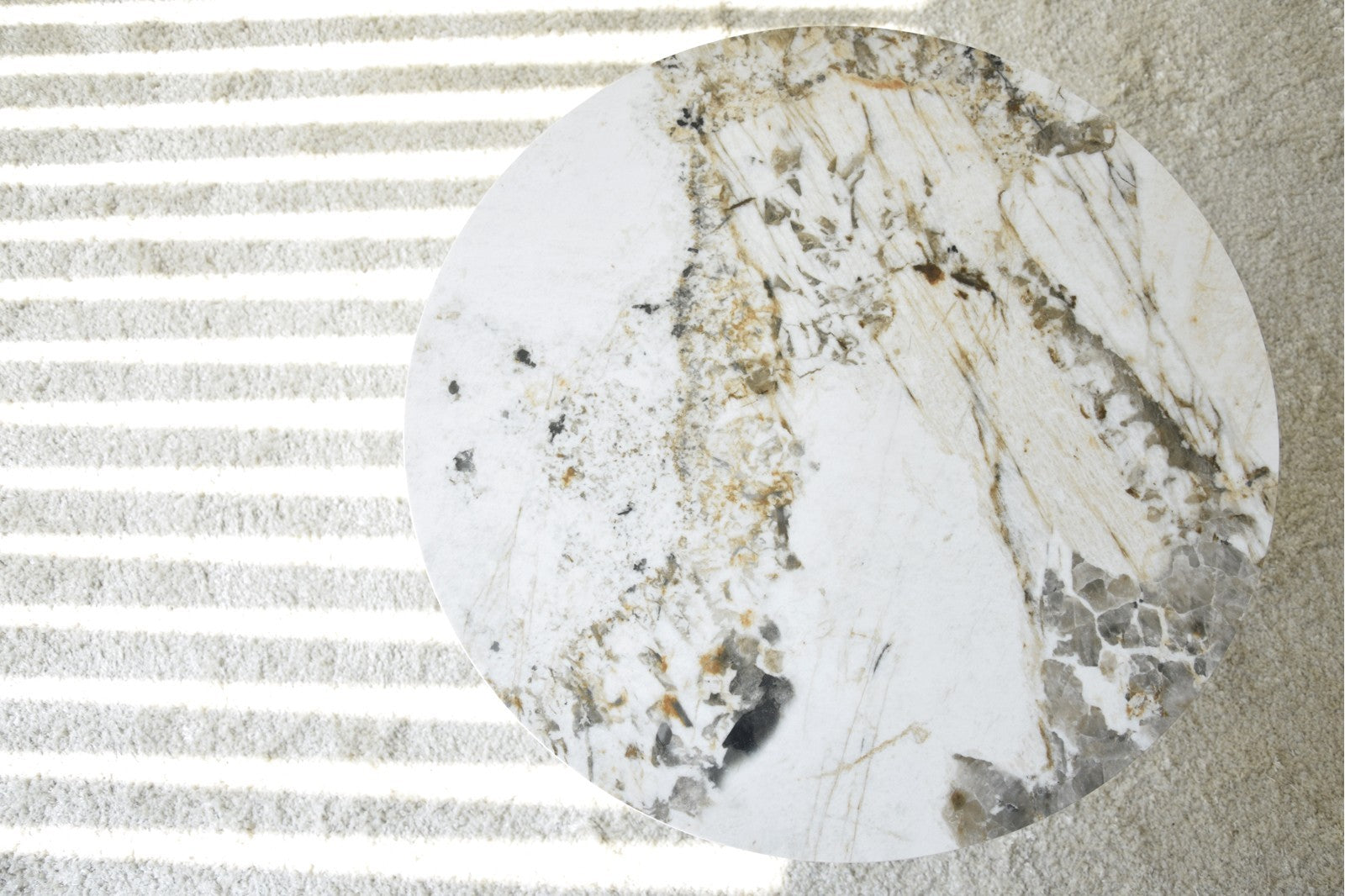 MESA AUXILIAR PIEDRA SINTERIZADA Y METAL 60 X 40