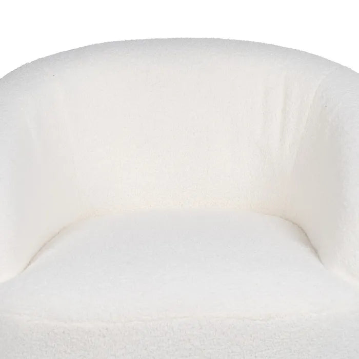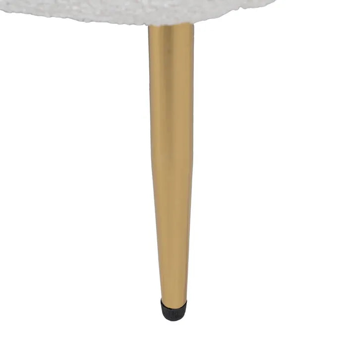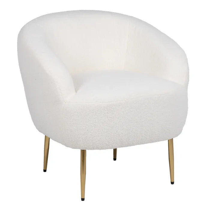 This armchair features a distinct white fabric and metal construction for a sophisticated look.