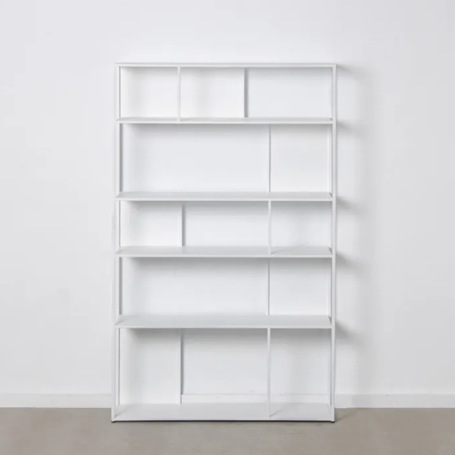White metal shelving.  Material: iron Hollow measurements: 97x22x29 97x22x39.5 97x22x29 97x22x39 97x22x29cm. Includes rear washer for fastening....