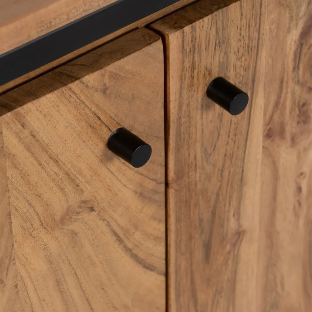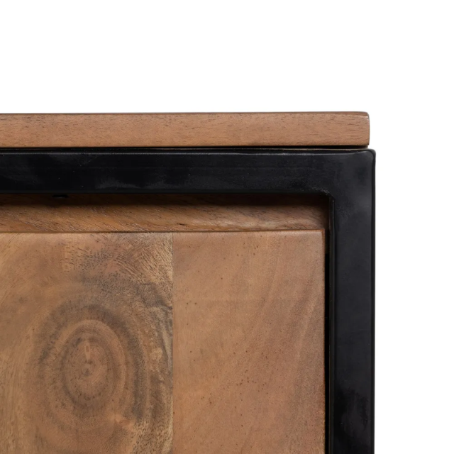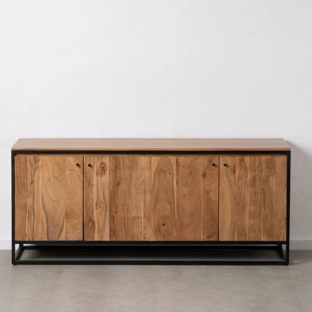 Natural wood - metal sideboard living room.  Material: acacia wood, iron. Doors: 43x54.5cm. Leg height: 14cm.