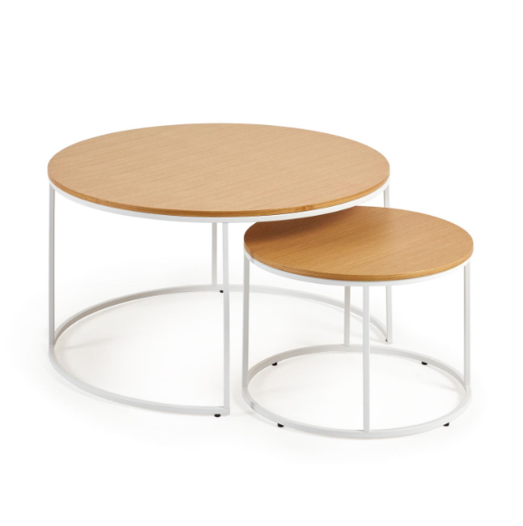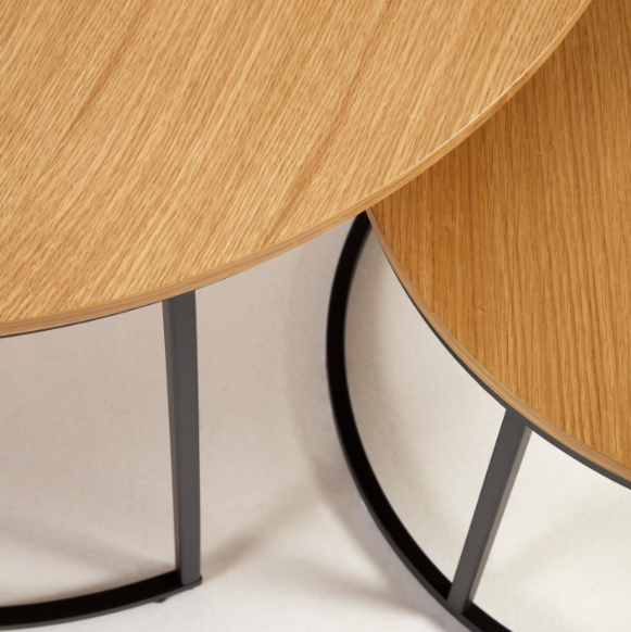 Yoana set of 2 nesting side tables in oak veneer and painted metal