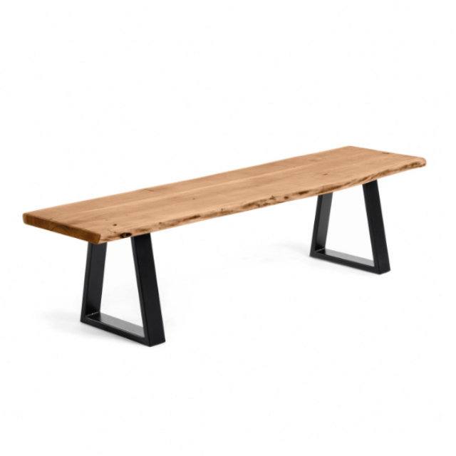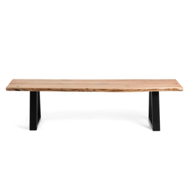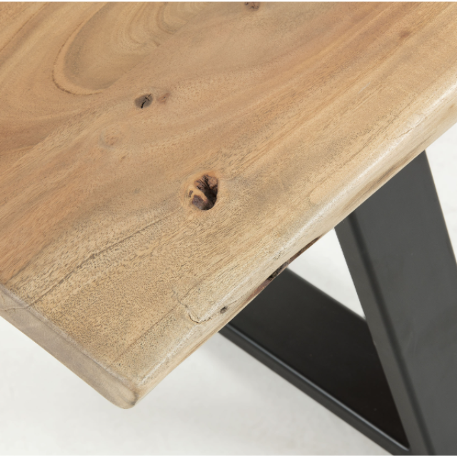 Alaia bench in solid natural acacia wood and black steel legs 140 cm