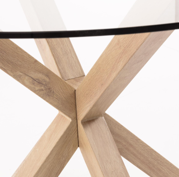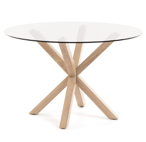 Full Argo round glass table and wood effect steel legs