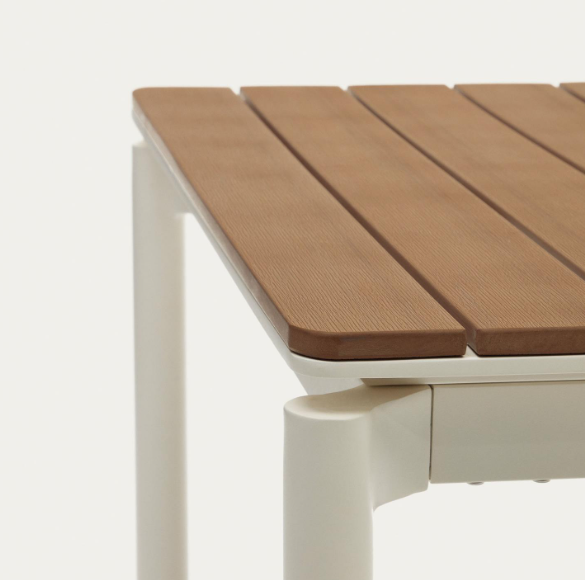 Canyelles extendable outdoor table in polywood and matte white aluminum.