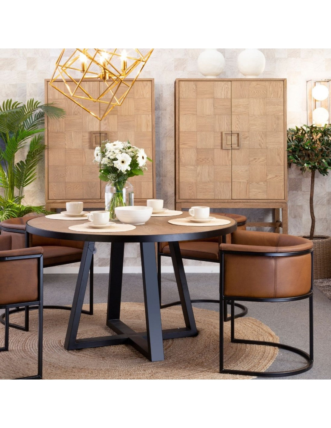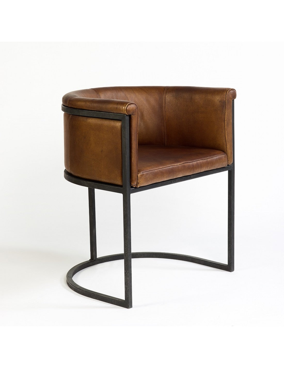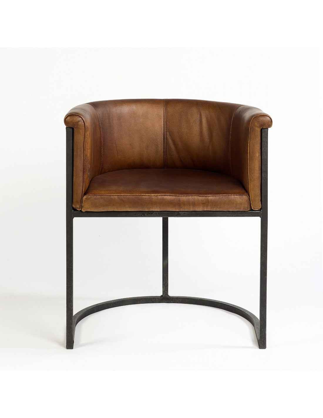 Brown leather armchair with black metal legs. Softness from leather, perfect for contemporary decor. Durable and timeless,...