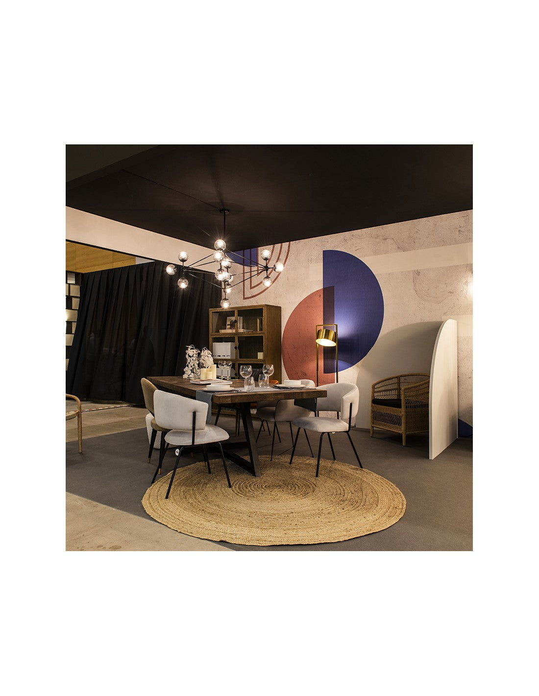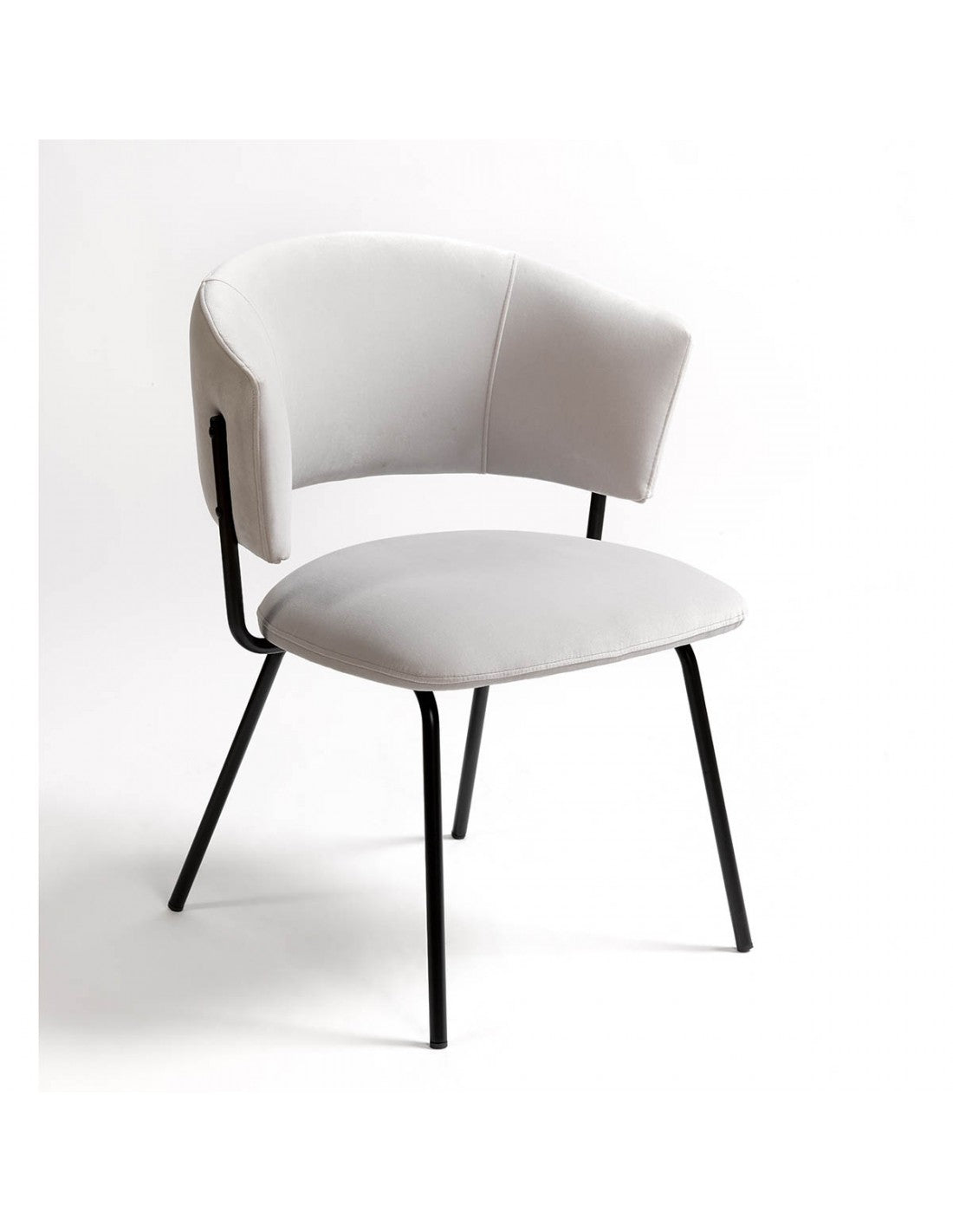Upholstered chair in white / grisaceo tone and black metal legs structure. Chair with rounded back. Anti...