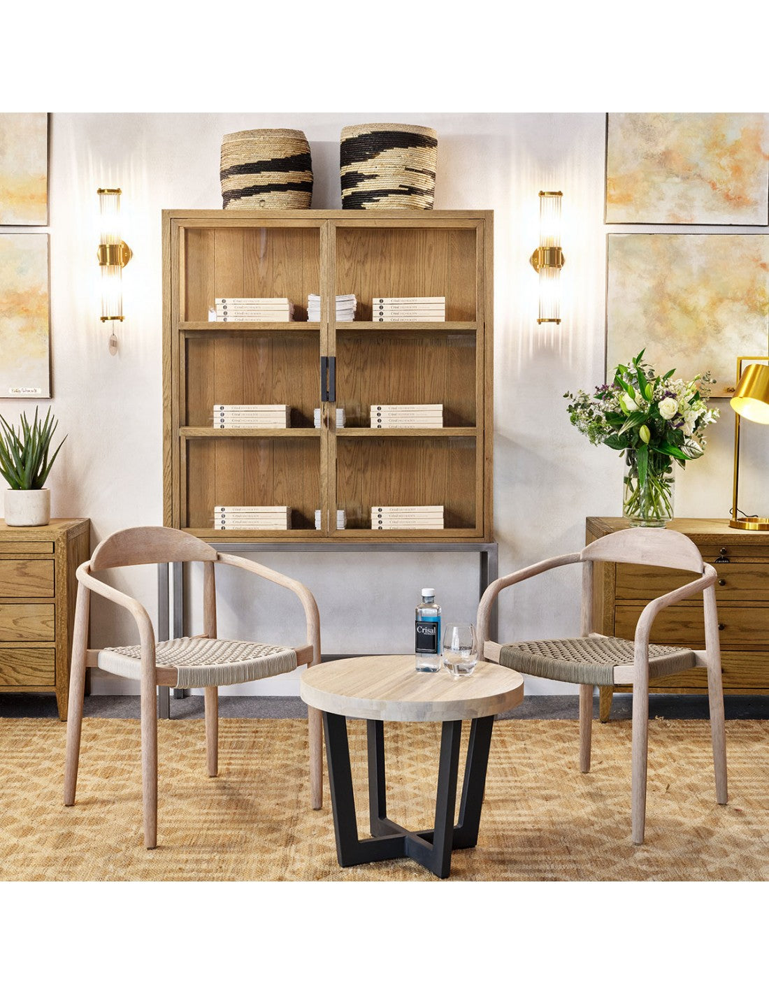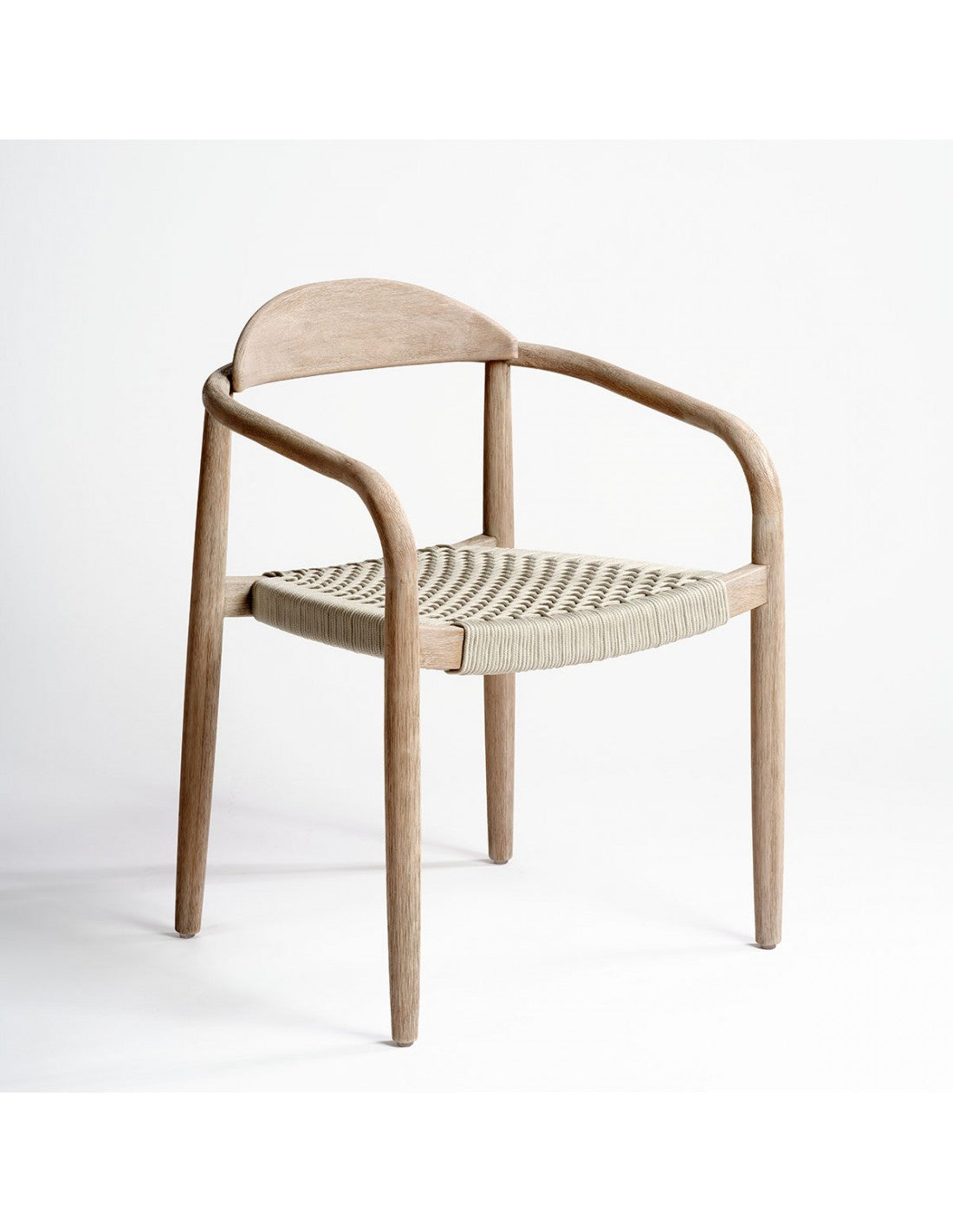 Light gray rope chair and light wood. Stackable armchair suitable for outdoor use thanks to its materials. Made of...