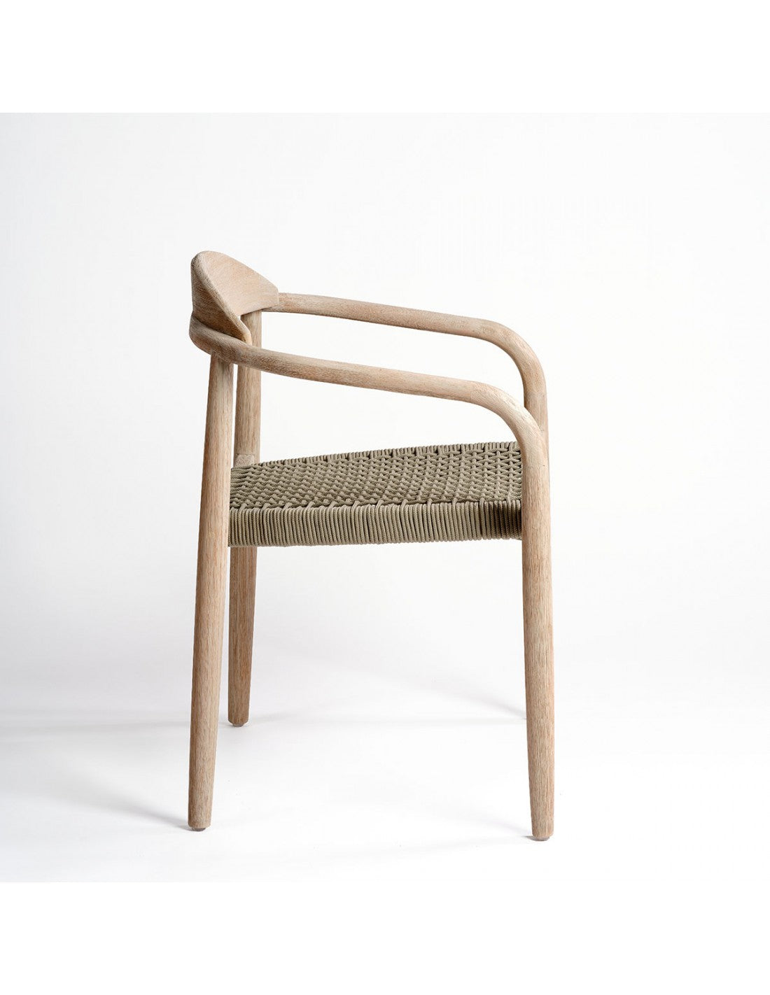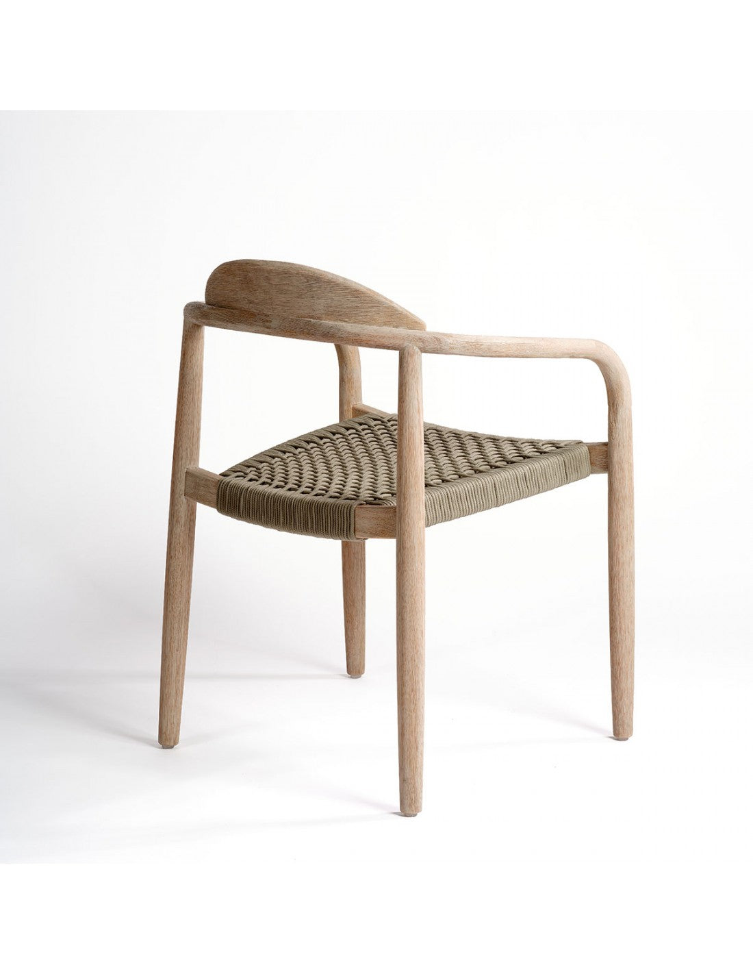 Taupe rope chair and light wood. Stackable armchair suitable for outdoor use thanks to its materials. Made of synthetic...